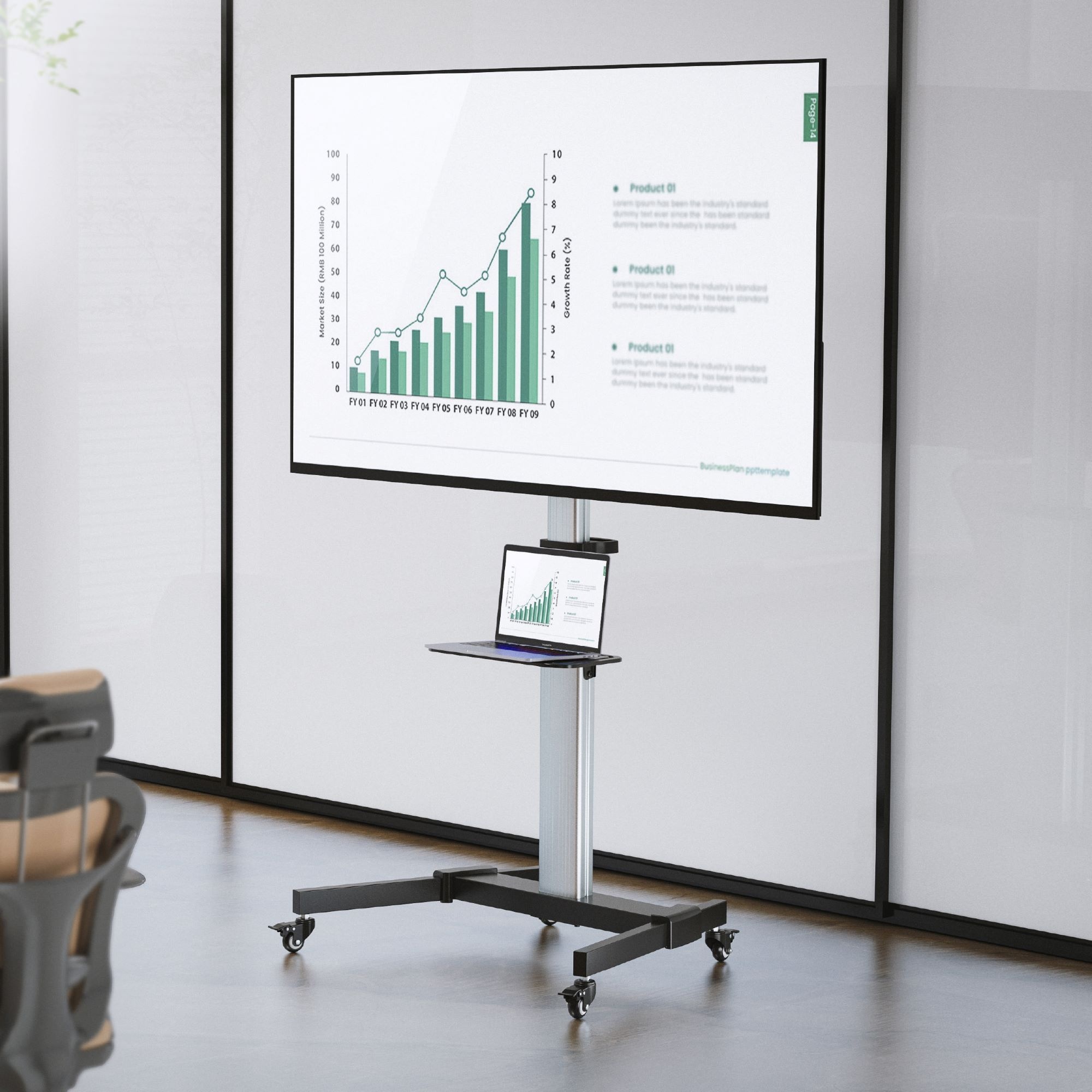 - EASY MOVEMENT: Convenient for moving your TV around at home or in the office, the TV stand meets all your needs. Effortlessly move your TV from the living room to the bedroom. Perfect for commercial use in offices, conference rooms, trade shows, hotels and more.