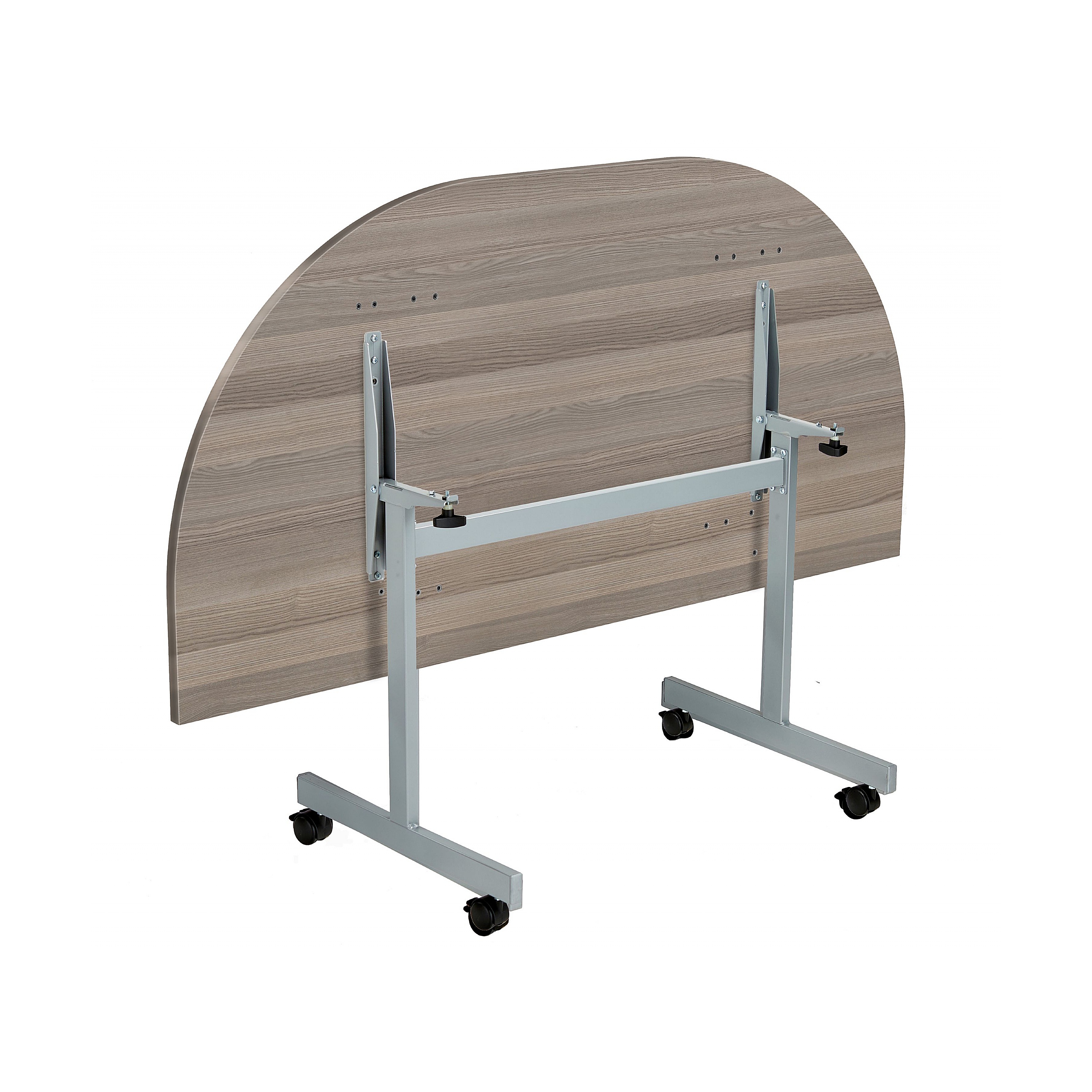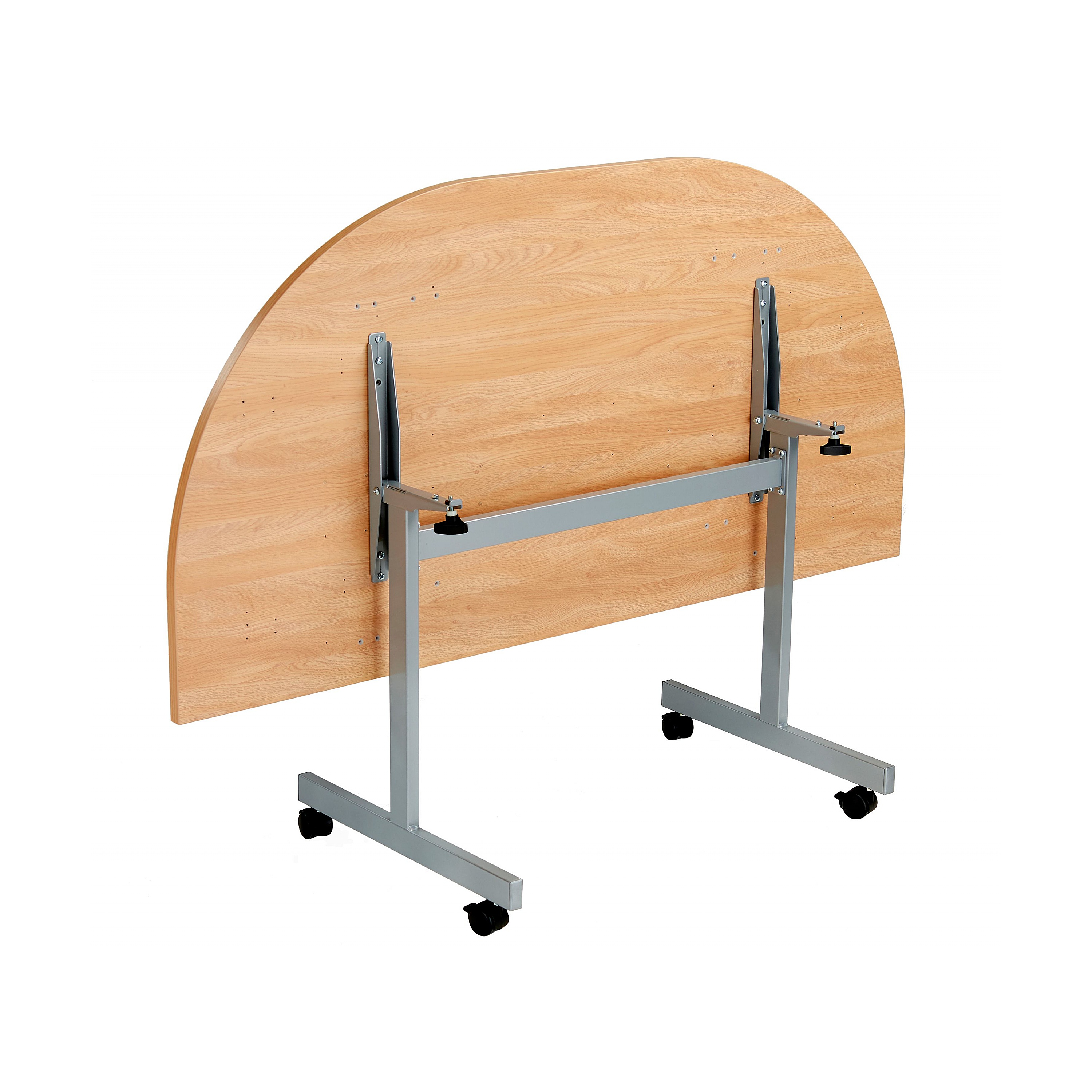 - Classic design semi circular flip top meeting tables.