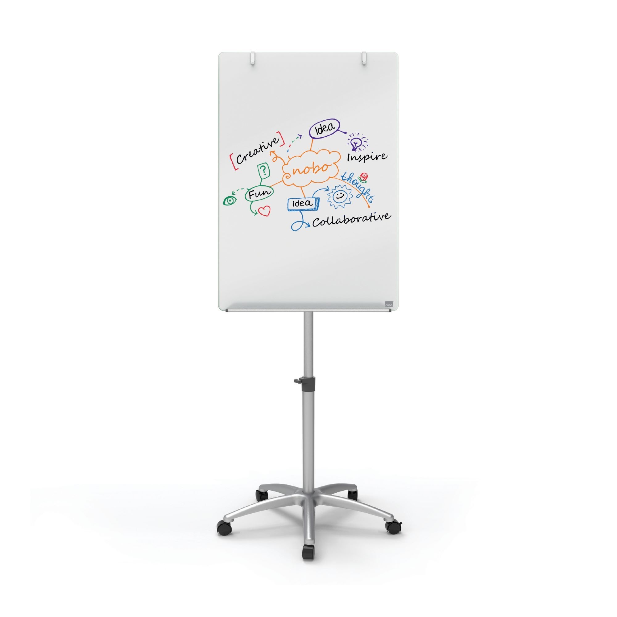 - Stylish frameless glass mobile flipchart easel is the go-to solution for effortless portability, ideal for brainstorming and presenting ideas in training environments, lecture theatres and meeting rooms where wall space is limited.