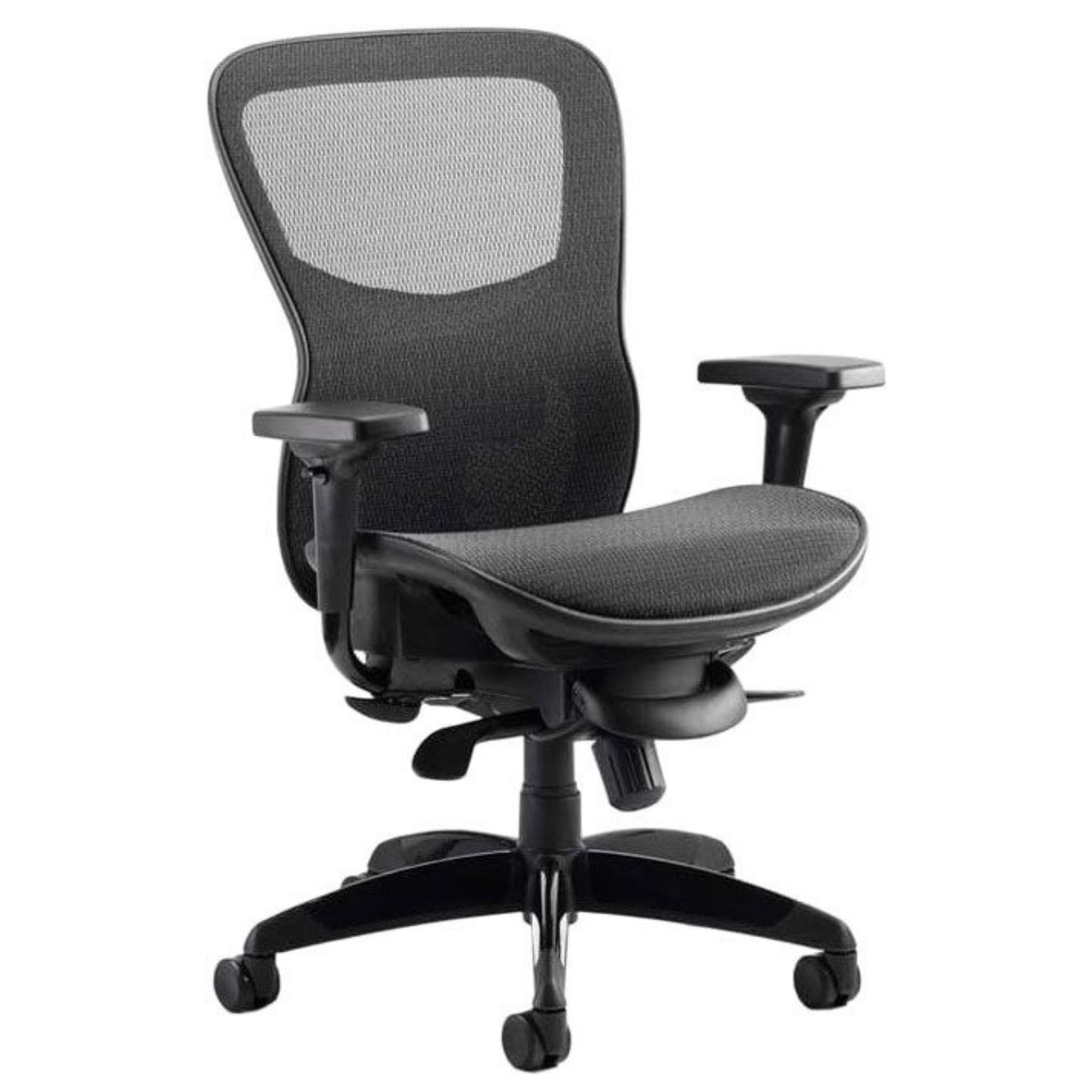 - Mesh seat and backrest in black.