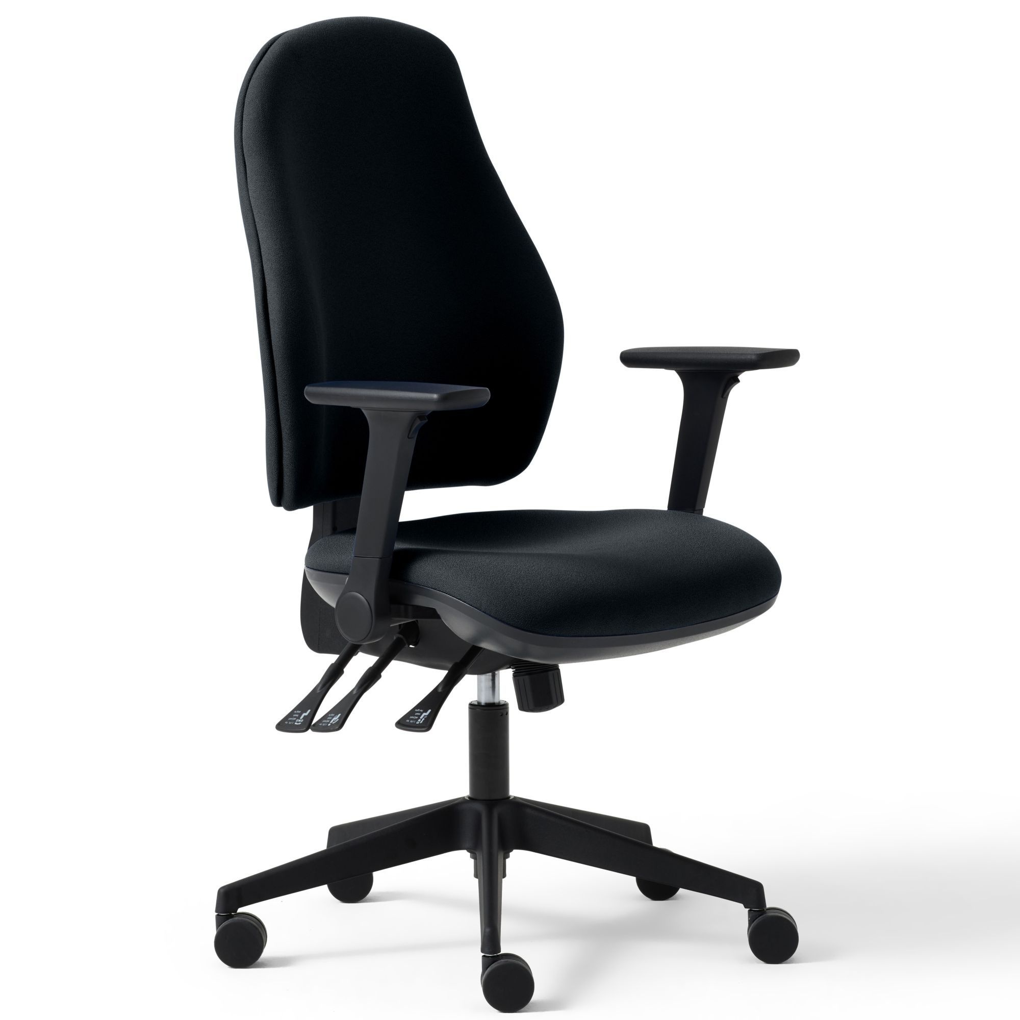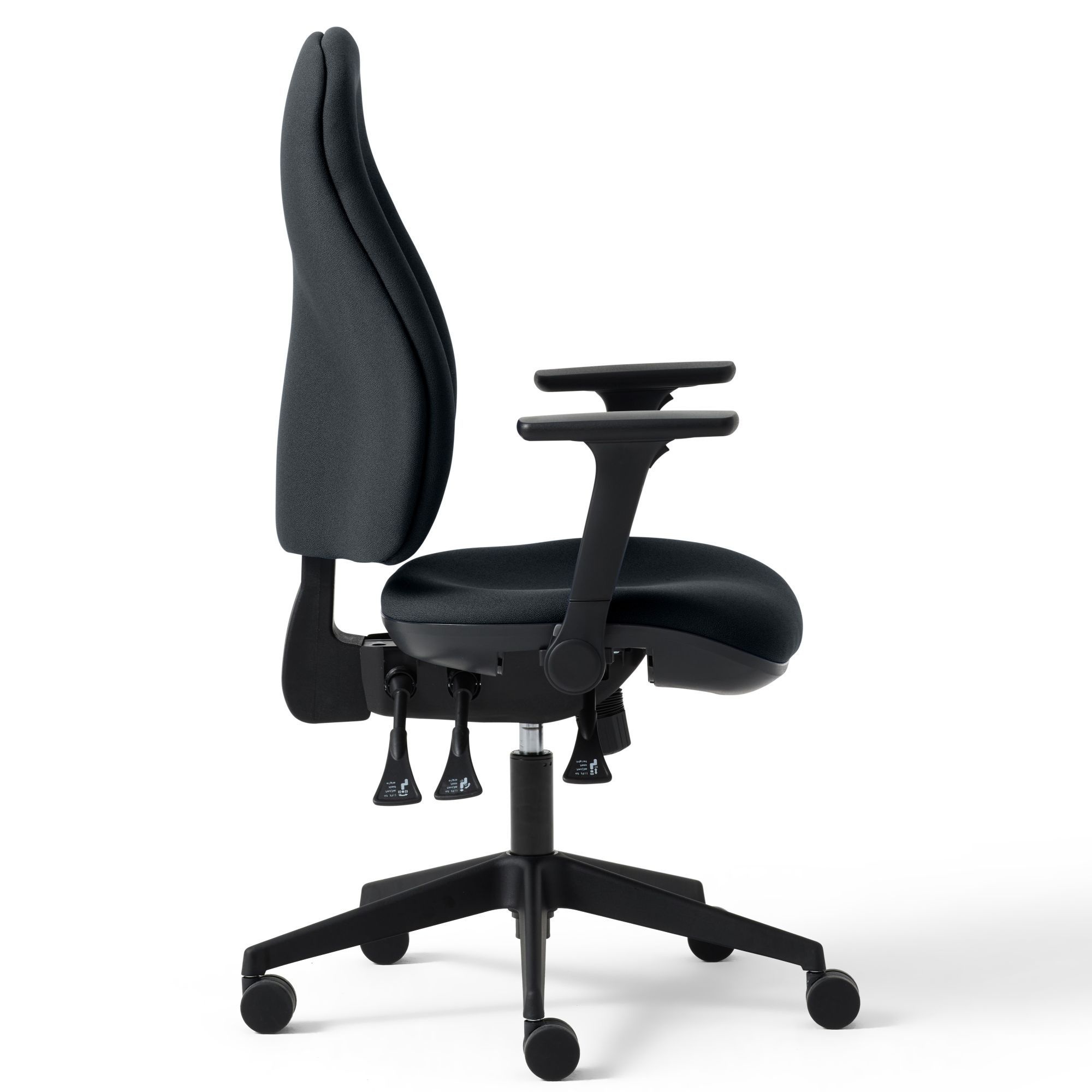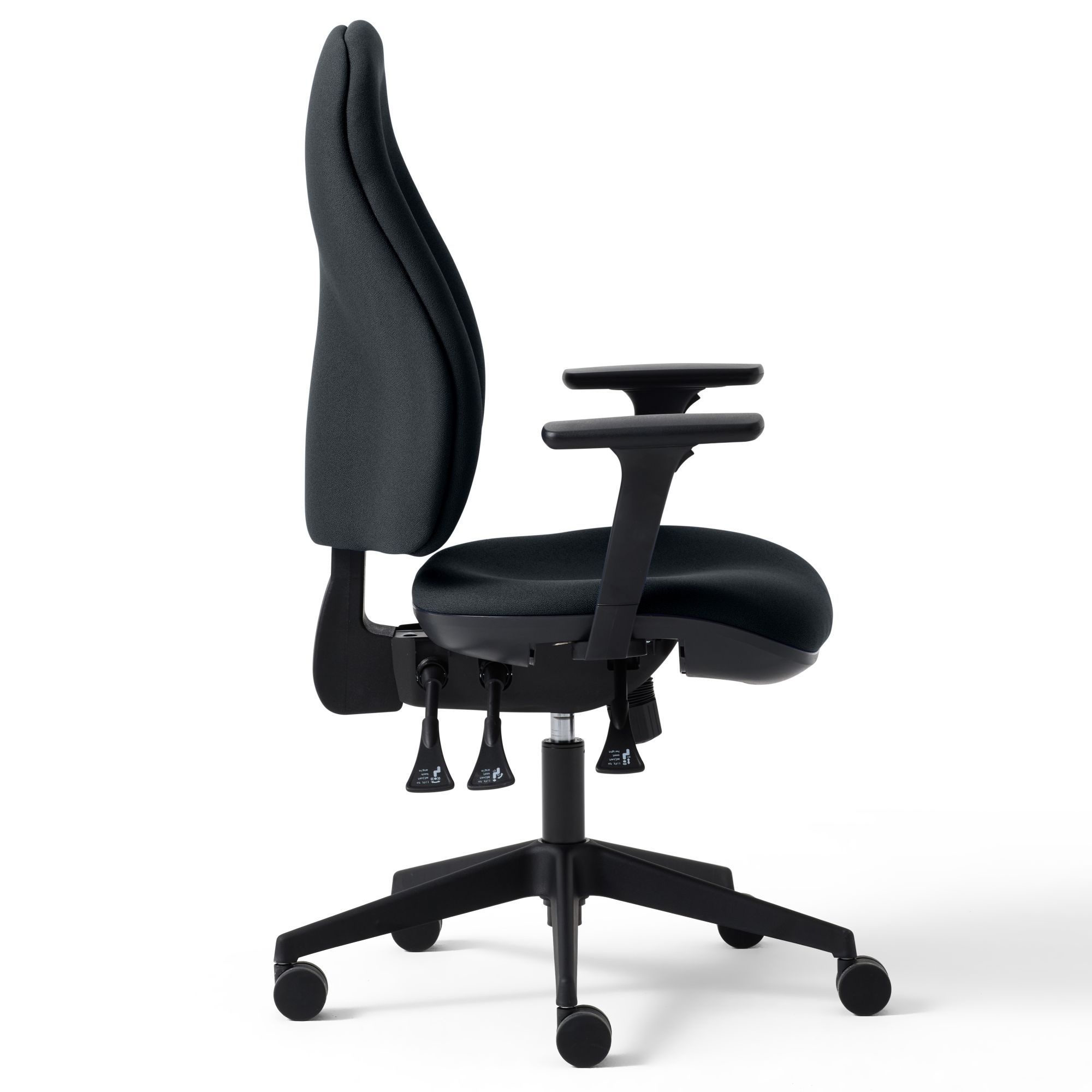 With its sculpted shape and easy adjustability, the Torasen Orthopaedica operator chair is all about providing the best possible support to give the back the care it deserves. A height-adjustable ratchet back can be fine-tuned to find the perfect sitting position for any user, promoting good posture by encouraging a straight back and relaxed shoulders. Optional extras include inflatable lumbar support and a seat slide for up to 50mm of depth adjustment.Customisable Comfort – Armrests to Suit Your Sitting Position